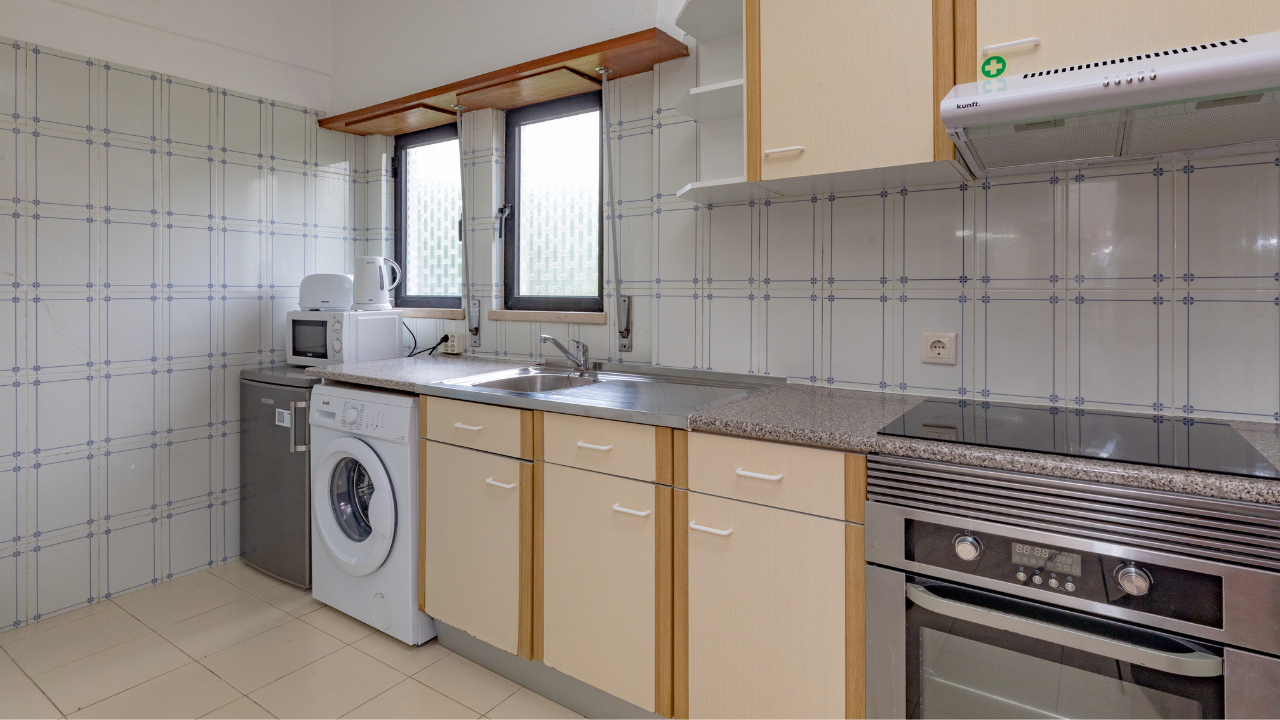 - Cozinha: Chaleira elétrica, frigorifico, micro-ondas, torradeira, máquina de lavar roupa, fogão/forno.